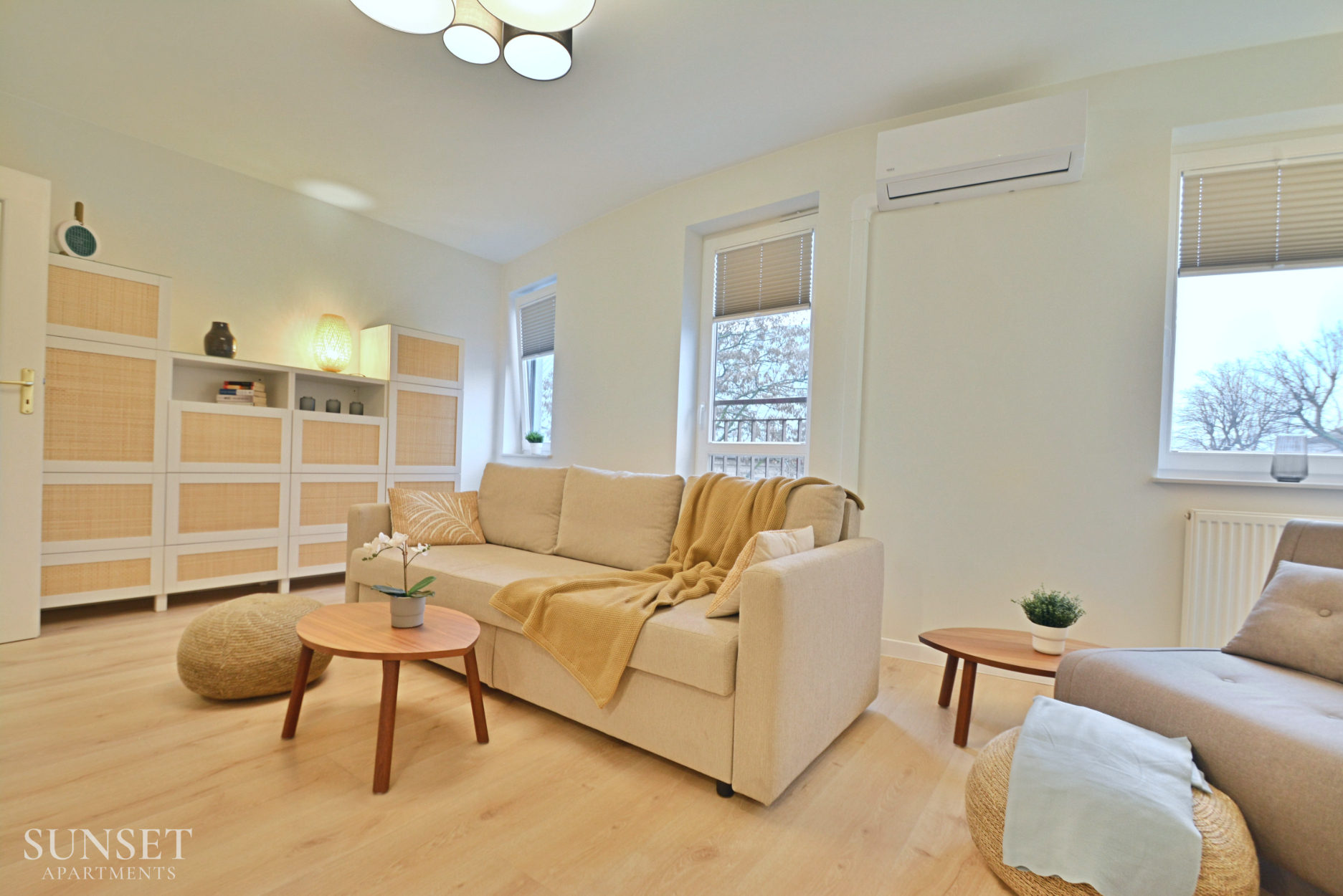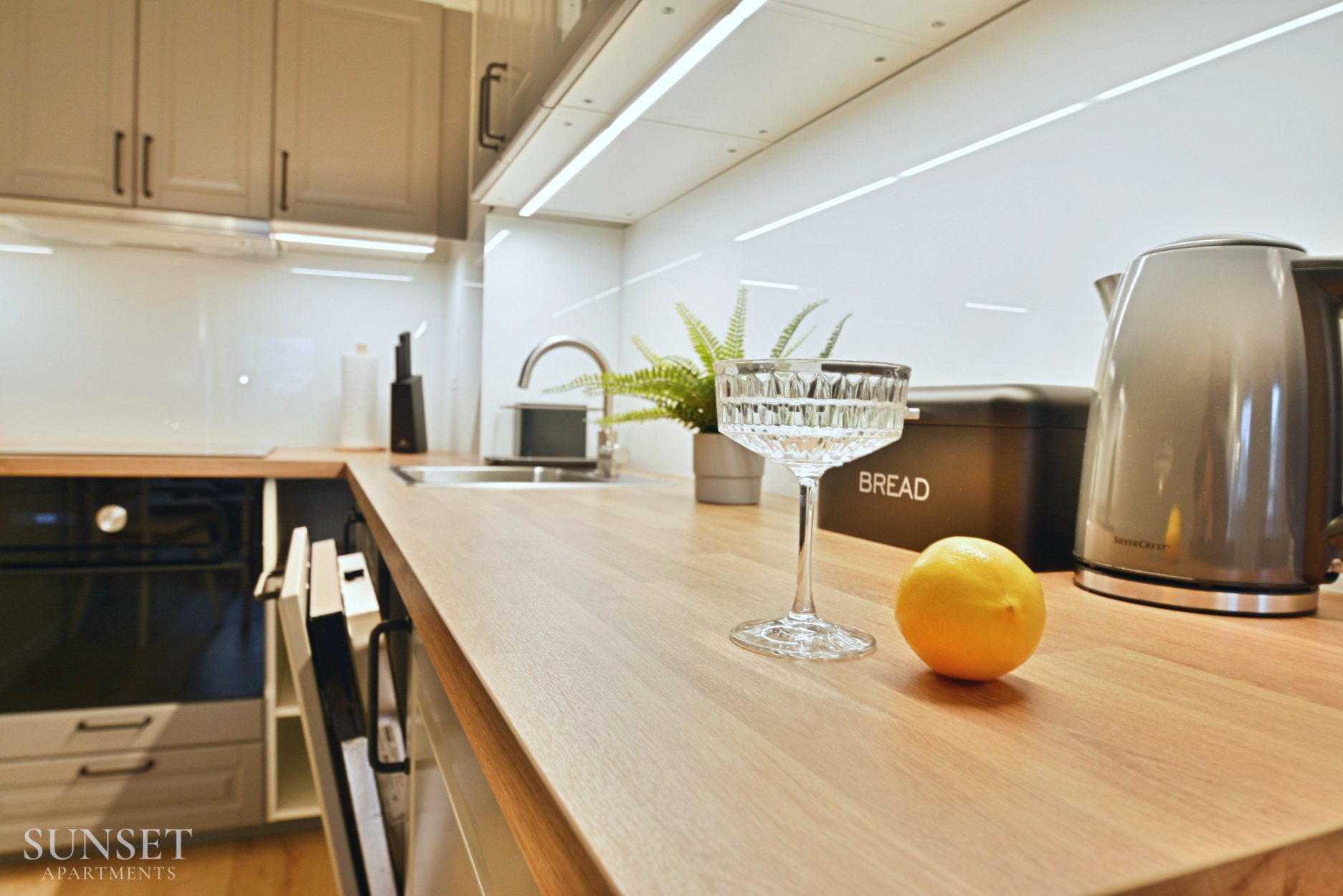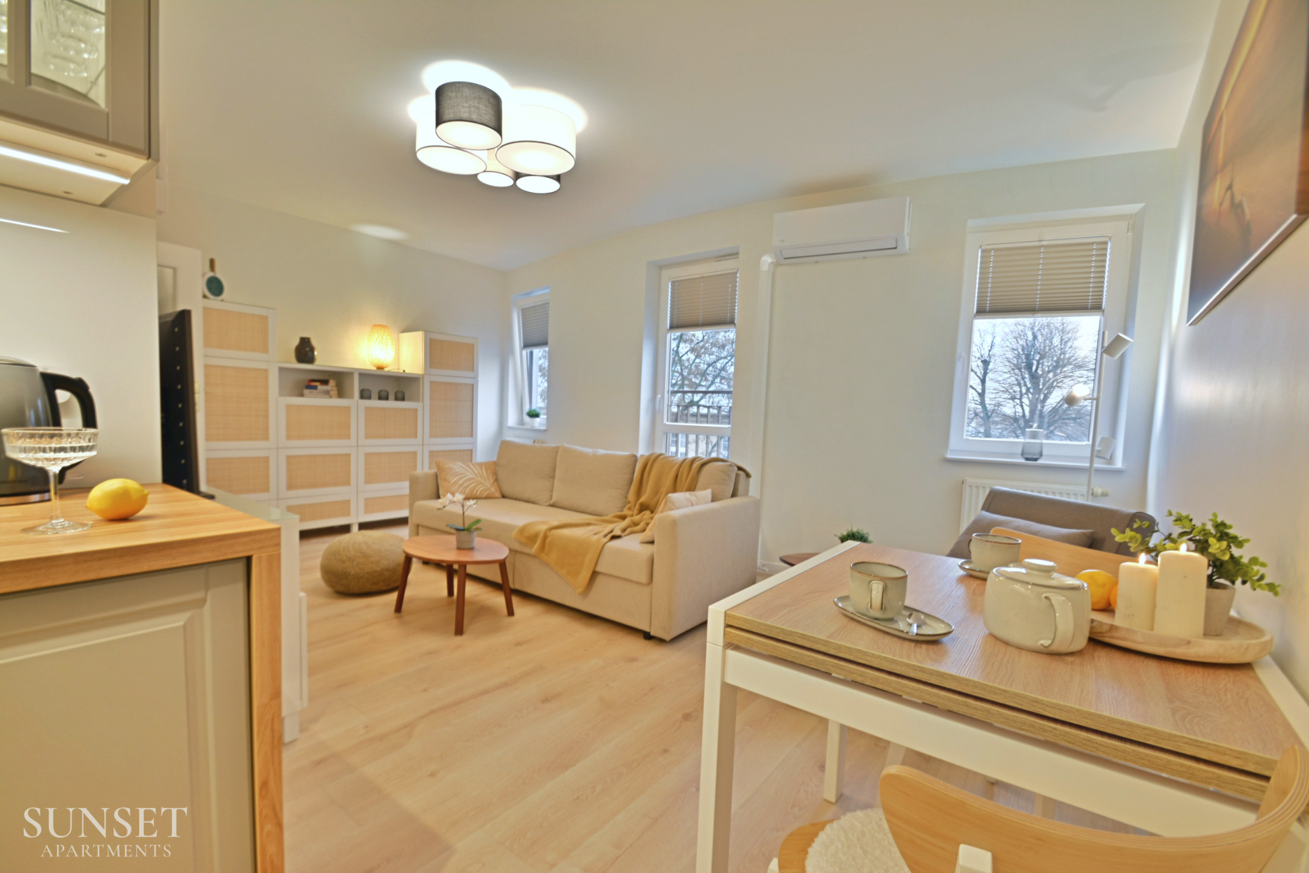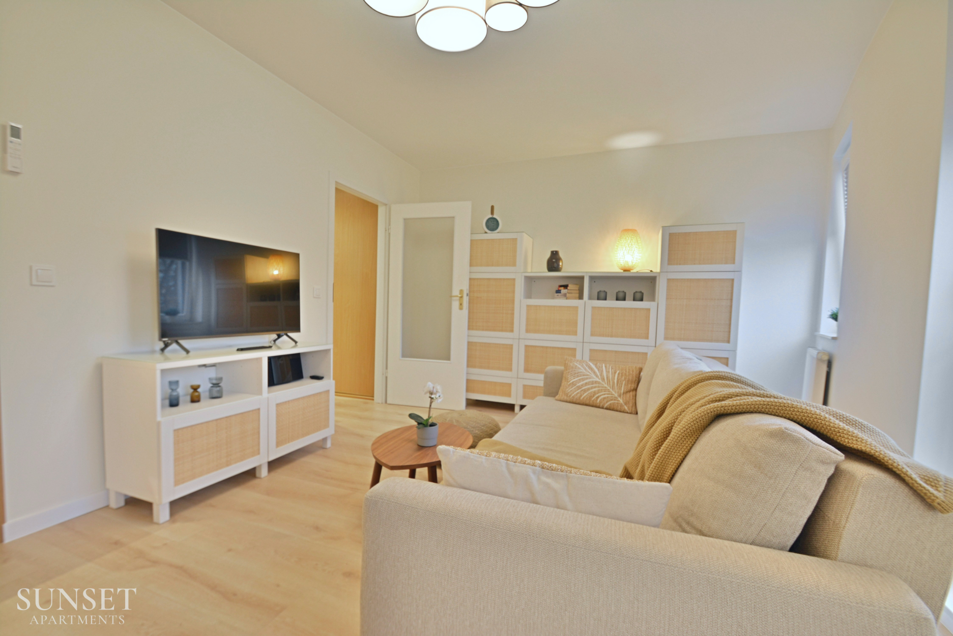 Prezentowana oferta przygotowana jest dla pobytu max. 3 osób. Przytulna kawalerka urządzona jest w piaskowo miodowych barwach. W pełni wyposażony aneks kuchenny ze zmywarką połączony jest z niewielkim salonem, w którym znajdziemy wygodną rozkładaną sofę dla dwóch osób i mały rozkładany fotel. Z mieszkania jest częściowy widok na port oraz Muzeum Rybołówstwa Morskiego. W ciepłe dni pobyt umili zamontowana w mieszkaniu klimatyzacja. Łazienka wyposażona jest w pralkę. Do mieszkania nie przynależy prywatne miejsce parkingowe.