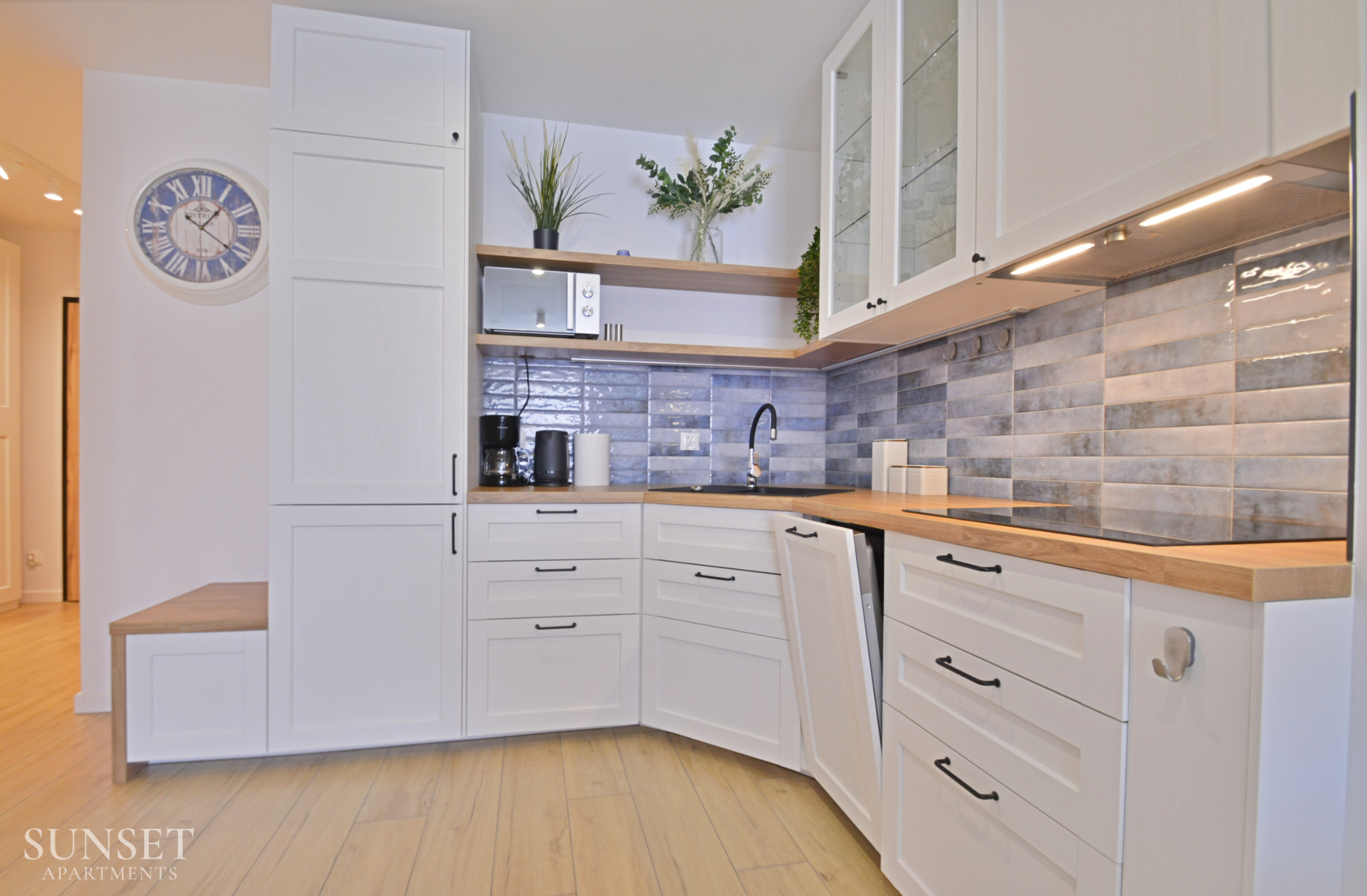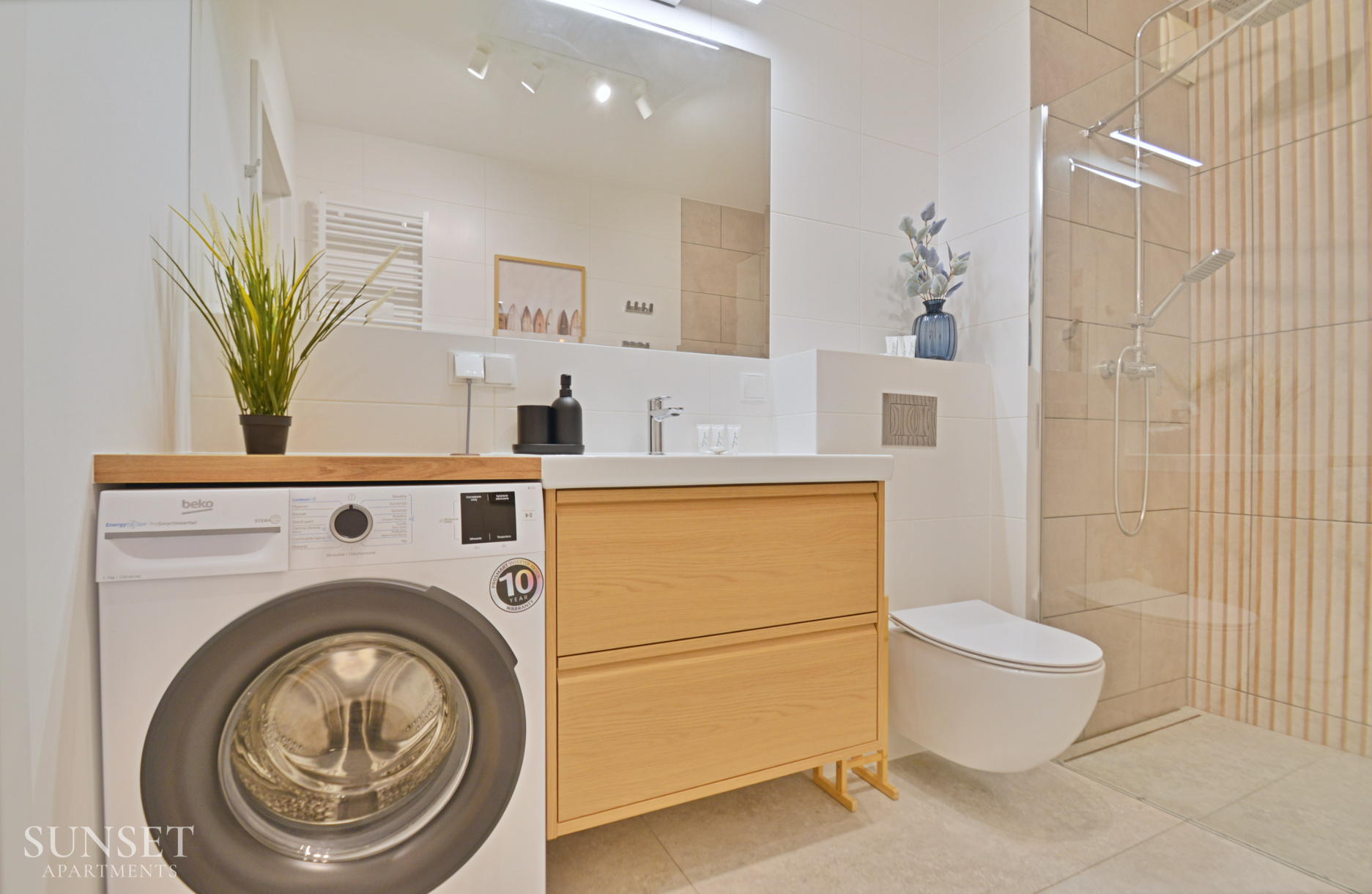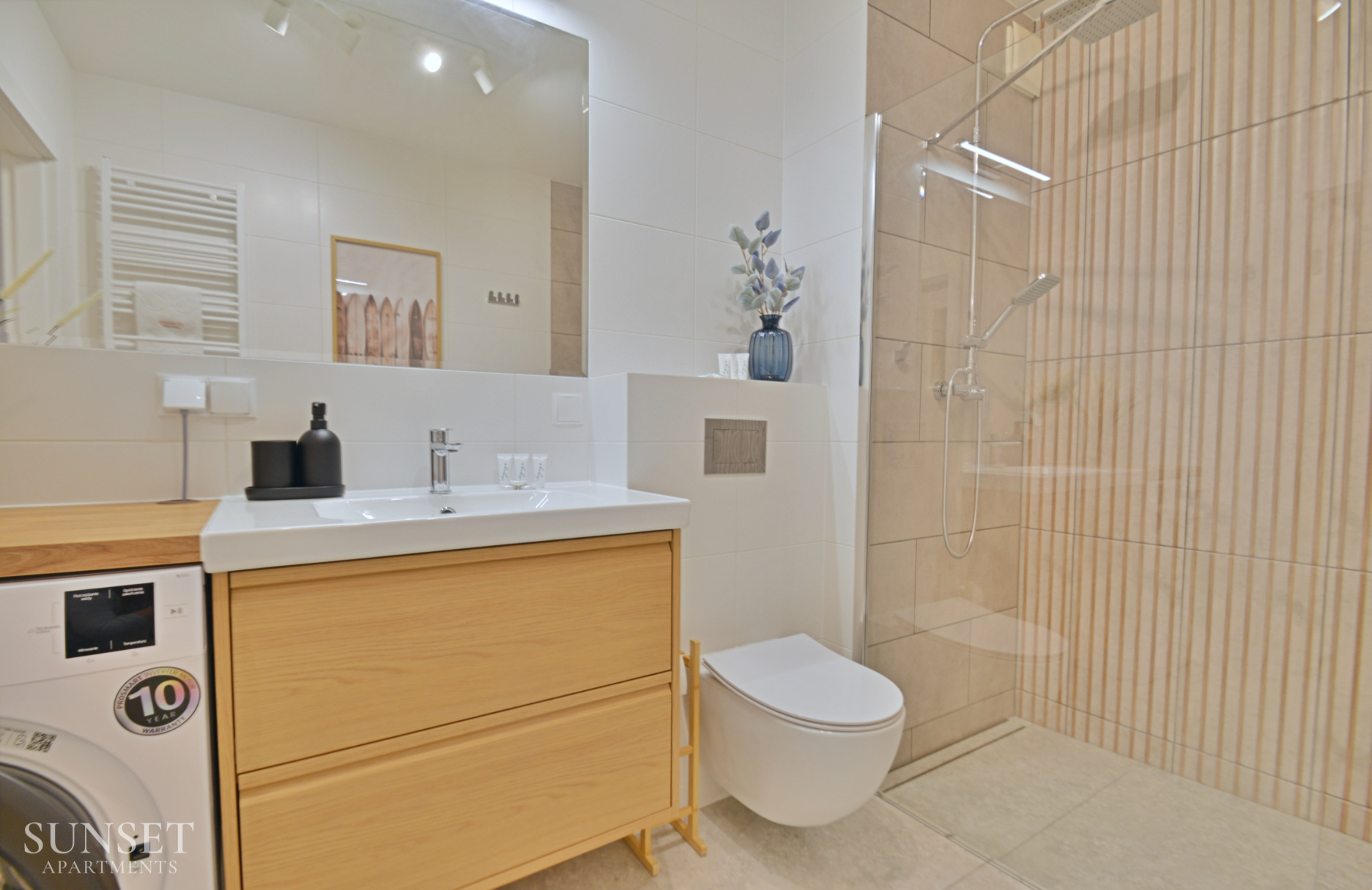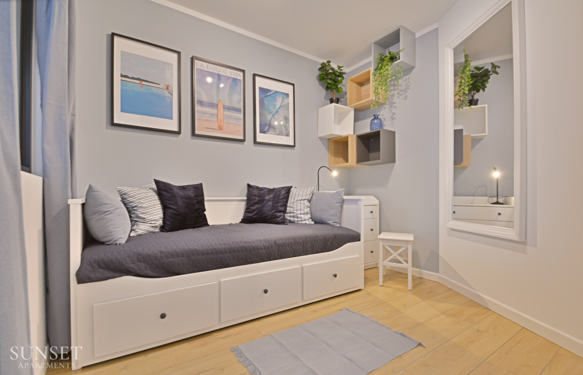 Prezentowany apartament do nowoczesna oferta dla rodzin składająca się z trzech pokoi. Przeznaczona jest dla komfortowego pobytu max. 6 osób. Główna sypialnia wyposażona jest w wygodne łóżko małżeńskie o szerokości 160cm. Odzdzielona jest szybą z zasłonami od dodatkowej przestrzeni sypialnianej. W dodatkowej sypialni znajduje się rozkładana sofa do szerokości 160cm. Słoneczny salon z wygodną sofą i wyjściem na balkon połączony jest z przestronnym aneksem kuchennym. Łazienka wyposażona jest w pralkę, co sprawi że pobyt będzie jeszcze bardziej komfortowy. Oferta posiada prywatne miejsce parkingowe w garażu pod budynkiem - wysokość wjazdu to 1,90m dla samochodów osobowych.